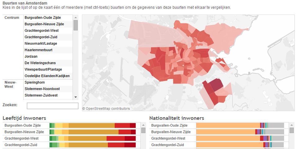 Gegevens over de inwoners en woningen van de buurten van Amsterdam worden overzichtelijk weergegeven in een interactieve infographic.