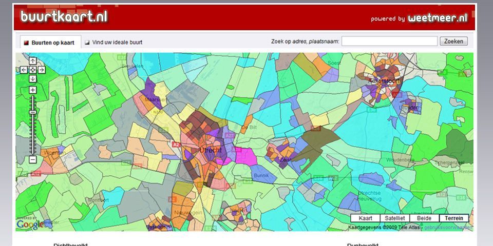 Inzending voor Apps voor Nederland, waarbij je jouw ideale buurt kon vinden aan de hand van een aantal factoren zoals bevolkingsdichtheid, welvaart, diversiteit en leeftijd.