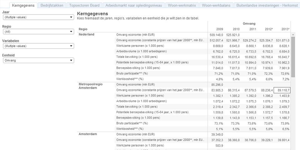 Data die voorheen alleen gepubliceerd werd in een PDF-rapport, wordt in opdracht van Economische Zaken van de gemeente Amsterdam nu ook als interactieve database gepubliceerd.